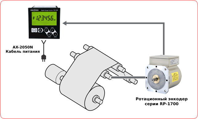 Длину бумаги или стальной пластины можно измерить с помощью поворотного энкодера, прикрепленного к подающему ролику. Функция переключения умножения или функция установки коэффициента серии DG-4300 позволяет преобразовывать сигнал из импульса кодировщика в длину объекта.